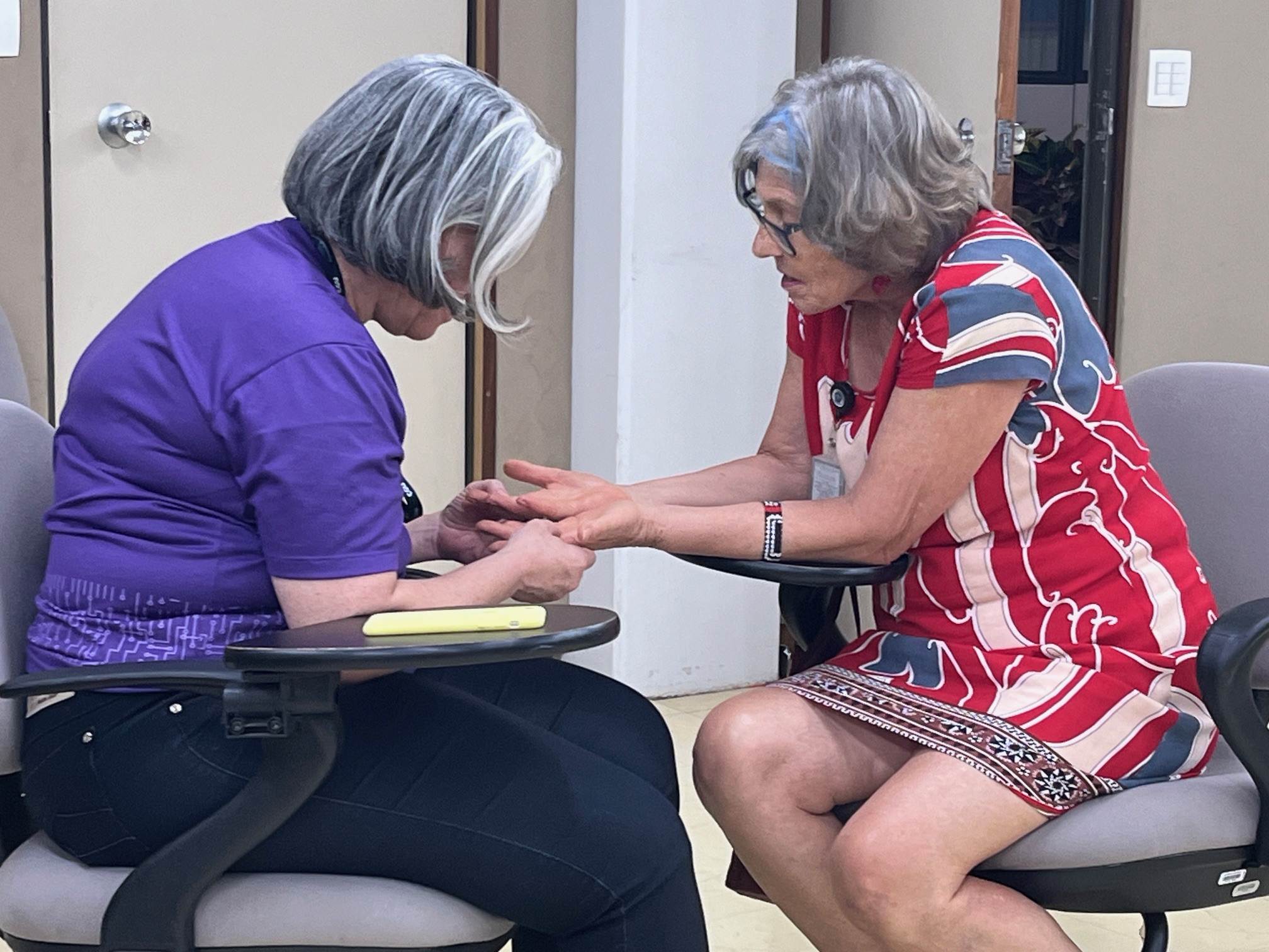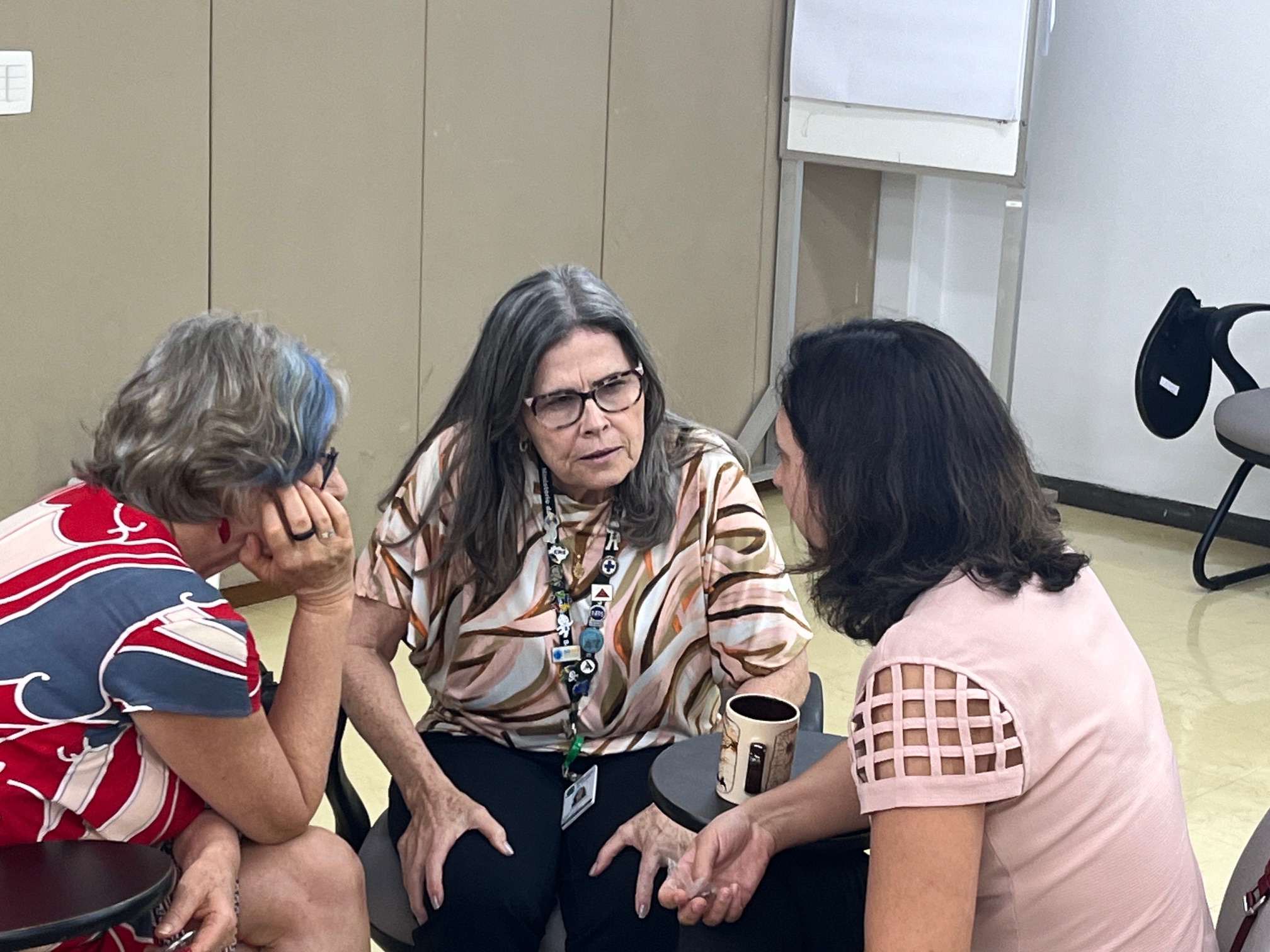 “Nunca acontece conflito na escolha do símbolo coletivo?”, perguntou uma participante. Uma colega refletiu: “Além do ambiente e da moderação, o giro continuo da roda difusa a tensão e dificulta bate-boca. O foco está no objeto íntimo, não no contador. Isso gera distanciamento, tanto para os ouvintes, quanto e em particular, para o contador.”