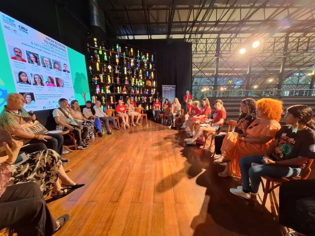 Na roda final, participantes celebraram a participação coletiva, inclusiva, democrática e social, sem a pressão autoritária do xicote do relógio (inscritas de 2-3 minutos que privilegie os mais lúcidos). “A metodologia aproxima e une todos os saberes presentes”, disse Letícia da Educação Ambiental (Ministério do Meio Ambiente) e ensina na prática como tomar decisões coletivas, em vez de votar, rachar e excluir.”