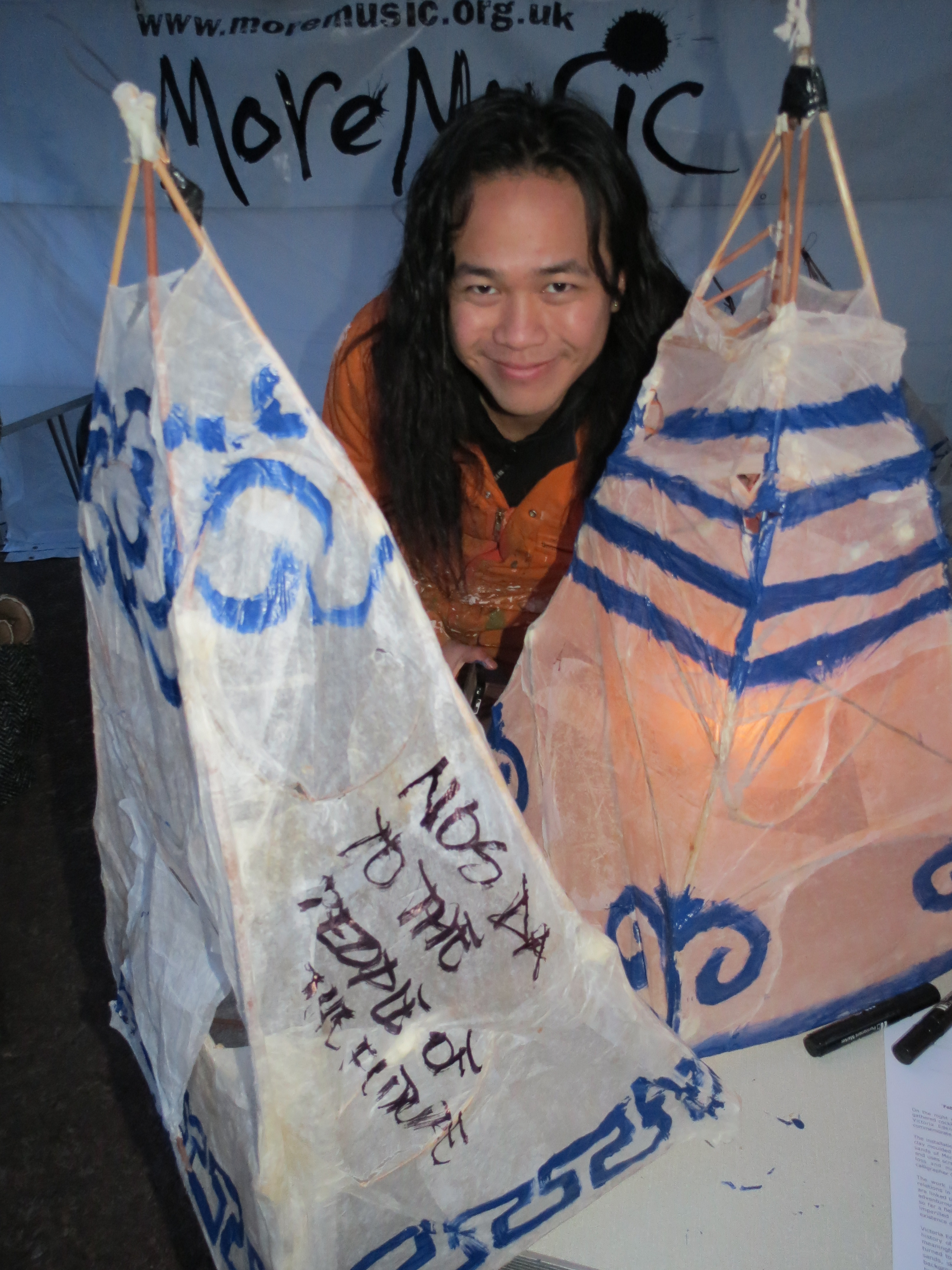 Eric Ng, artista e arteducador de Hong Kong, grande colaborador de nosso Instituto Transformance, cumprimente os jovens artistas de Rios de Encontro durante uma noite de ritual musical, visual e teatral em Morecambe, norte da Inglaterra, para lembrar os 23 trabalhadores chineses que morreram no dia 05 de fevereiro de 2004, pescando camarões. Eric encontrou nossa jovem coordenadora, Evany Valente, durante a visita dela em julho de 2013. Veja a história deles no nosso calendário de 2014!