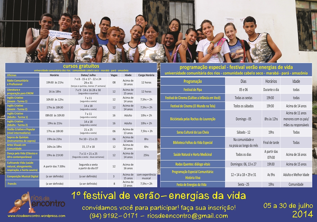 Qualquer pessoa interessado pode escrever para riosdeencontro@gmail.com ou ligar para Manoela Souza, (94) 9192 0171.