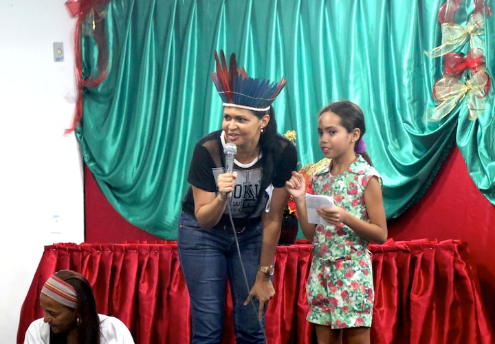 Professora Laudelina anuncia uma apresentação teatral acadêmica na Mendonça Cultural e abertura do Beleza Amazônica que valoriza sabedoria indígena e cuidado ambiental. Os governos federal e estadual nāo entendem o consenso popular e reflexos culturais aqui em Marabá sobre a preservação da Amazônia.