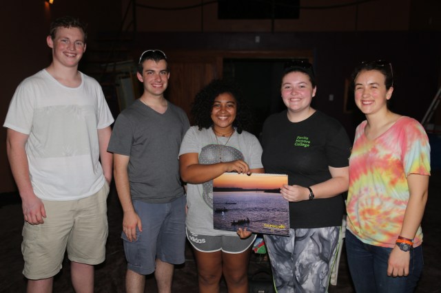 Elisa Neves entrega um calendário aos estudantes da Universidade de Michigan, no final de uma tarde de apresentações artísticas e uma roda impulsionada pela visita da Universidade Comunitária dos Rios à Belo Monte.