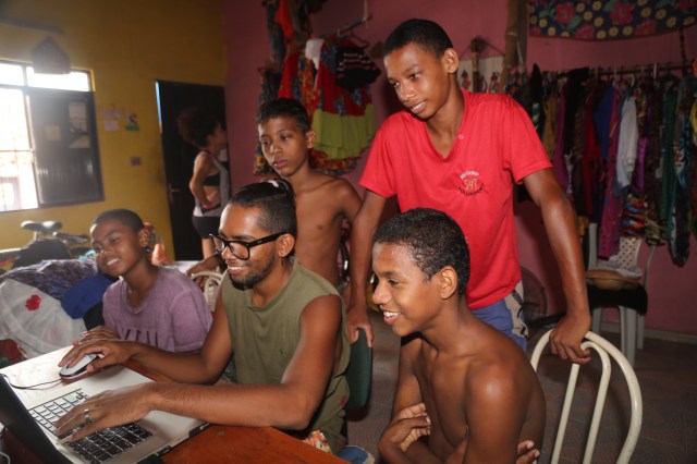Rerivaldo Mendes (Rabetas Coletivo) edita videos com jovens de Cabelo Seco para a 1ª Mostra ‘Minha Rua, Minha Vida’.