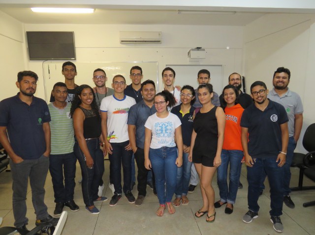 Estudantes parceiros da Empresa Junior (E3J) da faculdade de Engenharia Elétrica se retratam com Alan Souza e Rómulo Réis da Empresa Amazon Solar, após a roda.