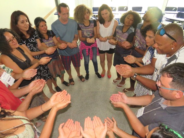 O ritual de agradecimento coletivo no final foi conduzido pelo arteducador baiano da PM, Luis Carlos.