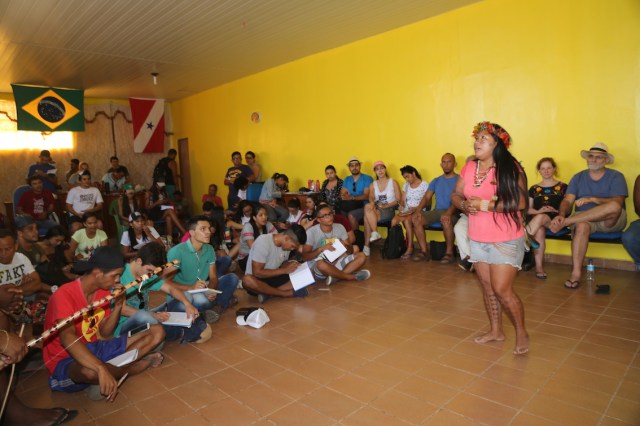 Os moradores/as de São João do Araguaia escutam depoimentos de Dani Silva do Movimento Xingu Vivo para Sempre e Alessandra Munduruku do Movimento Tapajós Vivo para Sempre para vislumbrar seu futuro e tomar decisões informadas sobre opções energéticas.