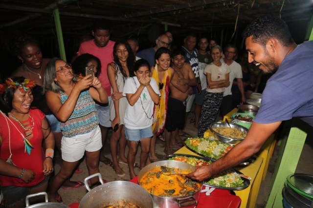 Leonardo Santana de São João de Araguaia apresenta comida típica bem viver, doada ao fórum. Energia solar salvaria a cidade que ficará de baixo de água caso a usina hidrelétrica de Marabá (UHM) seja construída.