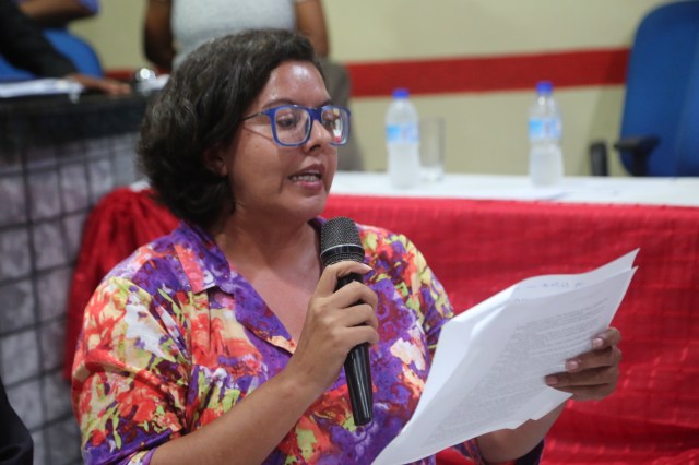 Professora Cris Cunha da Unifesspa le a Carta O Clamor do Lourenção elaborada pela Comunidade Ribeirinha Extrativista Vila Tauiry (abril 2019).