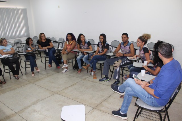Fábio Rógerio da SEMED escuta os jovens do Coletivo AfroRaiz refletem sobre o projeto piloto Raizes de Autonomia.