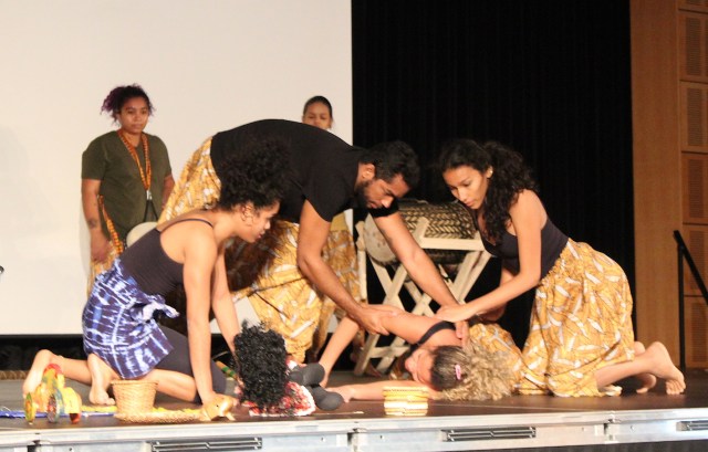 AfroRaiz encerra a apresentação ‘Rio Voador’ com um grito afro-brasileiro de Axé e o público respondeu sempre com perguntas sobre como defender Amazônia.