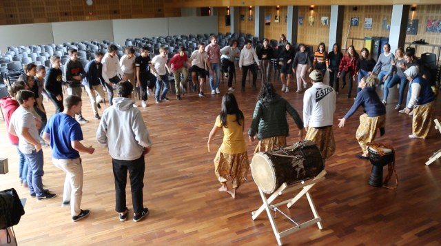 “Nossa oficina para alunos portugueses (e afro-descendentes de Guine Bissau, Angola, Moçambique e Cabo Verde)”, continua Camylla, “foi uma profunda convivência de descolonização! Bisnetos dos escravizados e sobreviventes de genocídio, ensinando dança e percussão afro-indígenas para bisnetos dos colonizadores! Não usamos Português. Encantamos, sensibilizamos e cicatrizamos!”