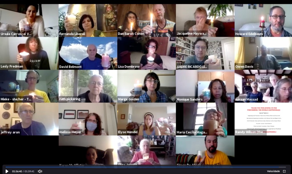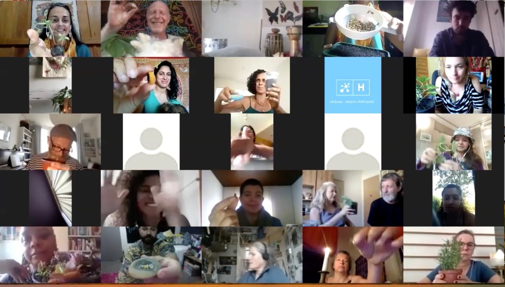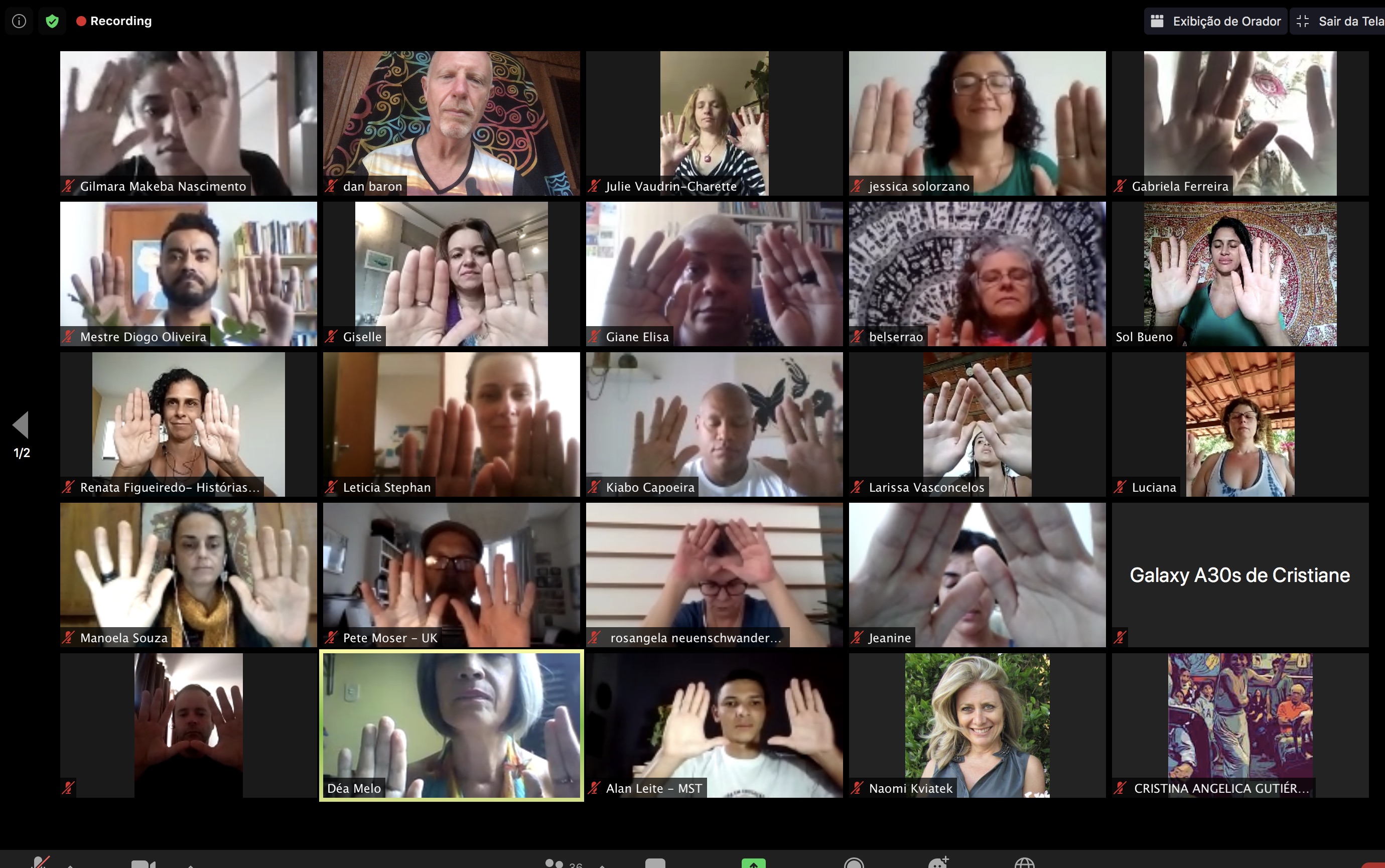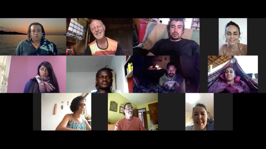Dan Baron complementa. “Essa performance virtual inspirou cada participante integrar cuidado pela familia, comunidade, cidade, rio, floresta, campo e mundo, a partir de ações reais. Assim, no virtual, transformamos a pandemia de uma alerta cruel em um retiro de formação. Virou uma vivência marcante em como entender o mundo bem viver, e como retomar e reinventar nossas raízes indígenas cortadas ou adormecidas.”