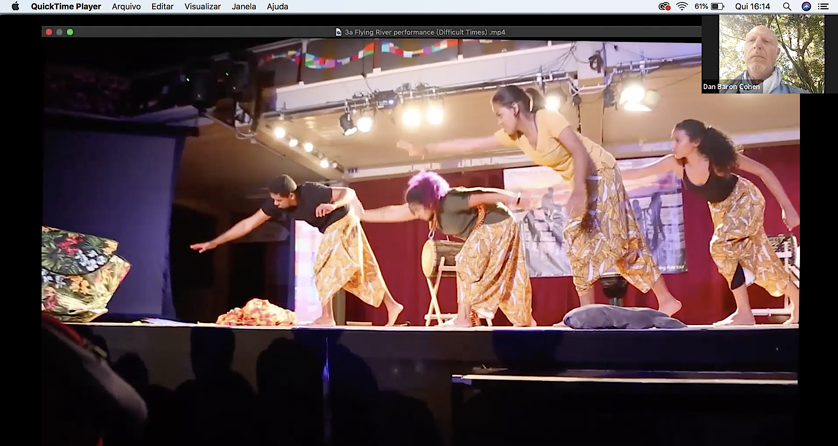 Durante o primeiro semestre, Rios de Encontro, o projeto comunitário eco-cultural e socioeducativo do bairro Cabelo Seco, realizou seis ‘Rodas de Solidariedade Intercontinental em Tempos de Pandemia’; participou numa ‘Roda das Américas Sobre Transformação através de Performance’ e numa reunião da Rede Latino-Americana de Teatro Comunitário; contribuiu ao primeiro simpósio virtual sobre ‘Desenvolvimentos no Teatro e Performance Africanos’ realizado pela Associação de Teatro Africano; e coordenou a Rede Brasileira de Arteducadores na gestão do 3º Fórum Bem Viver (virtual). A busca inteira, a distância, por uma metodologia ‘bem viver’ virtual capaz de gerar esperança para um futuro em alto risco, se concretizou na Semana Mundial de Ação Climática no sábado passado.
