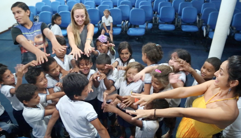Paralelamente, durante os dias, Rios de Encontro realizou 10 oficinas de dança, canto e teatro em colaboração com a escola EMEF Jose Mendonça Vergolino, sensibilizando mais de 240 alunos sobre a beleza amazônica na sua vida cotidiana. “Como eles vão valorizar e defender a Amazônia”, questiona arte-educadora Manoela Souza, “quando eles nem se reconhecem como parte de sua beleza e riqueza? Nossas pedagogias artísticas conseguiram comunicar com todas as faixas etárias, despertando o cuidado pelo meio ambiente e de cada ser como parte dele, e cultivando participação coletiva”.