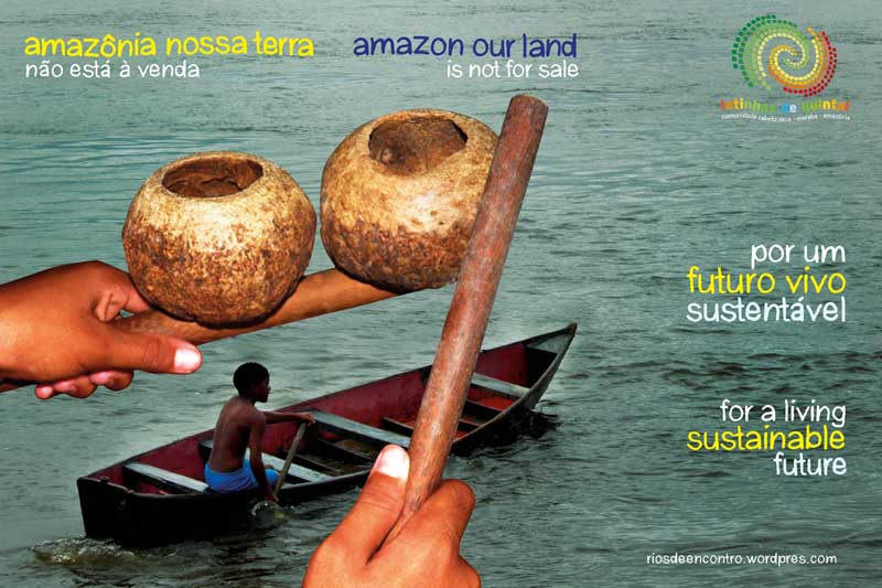 Outdoor do lançamento do CD ‘Amazonia Nossa Terra’ ( project_Rios_de_Encontro) que afirma o princípio que guia todos os. projetos do Instituto: Amazônia não está a venda.