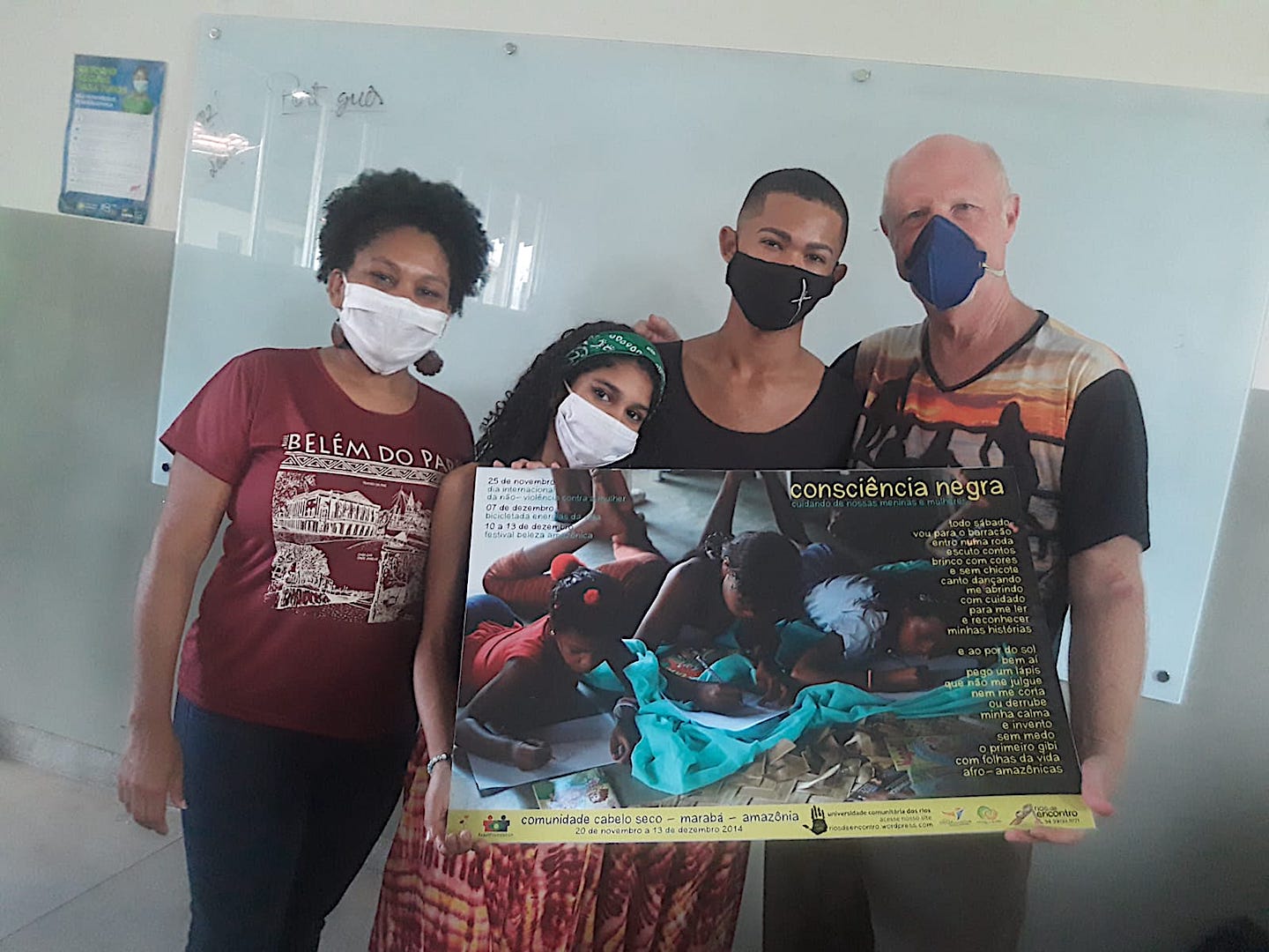 Nem é coincidência que um projeto eco-pedagógico na comunidade afro-indígena ribeirinha matrix de Marabá, vem curando uma exposição virtual e presencial de doze anos de ‘outdoors’ (4,5m x 3m), na pracinha e nas paredes de Cabelo Seco, bem no momento quando as raízes e seus guardiões originários estão ameaçados pela extinção e o mundo precisa transformar sua vivência traumática de pandemia, em uma escolha ciente entre vida e morte.