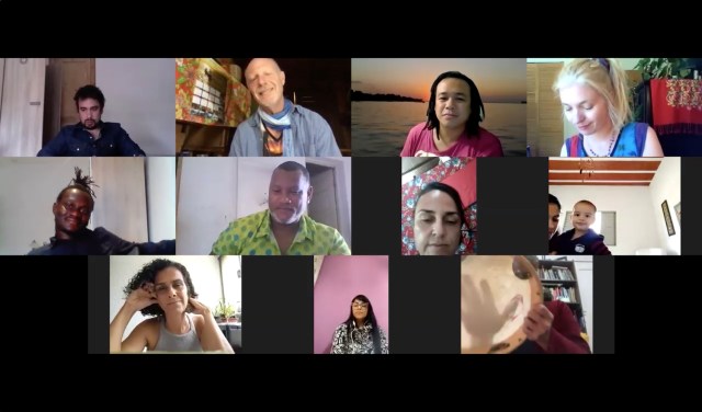 Dan Baron complementa. “Essa performance virtual inspirou cada participante integrar cuidado pela familia, comunidade, cidade, rio, floresta, campo e mundo, a partir de ações reais. Assim, no virtual, transformamos a pandemia de uma alerta cruel em um retiro de formação. Virou uma vivência marcante em como entender o mundo bem viver, e como retomar e reinventar nossas raízes indígenas cortadas ou adormecidas.”